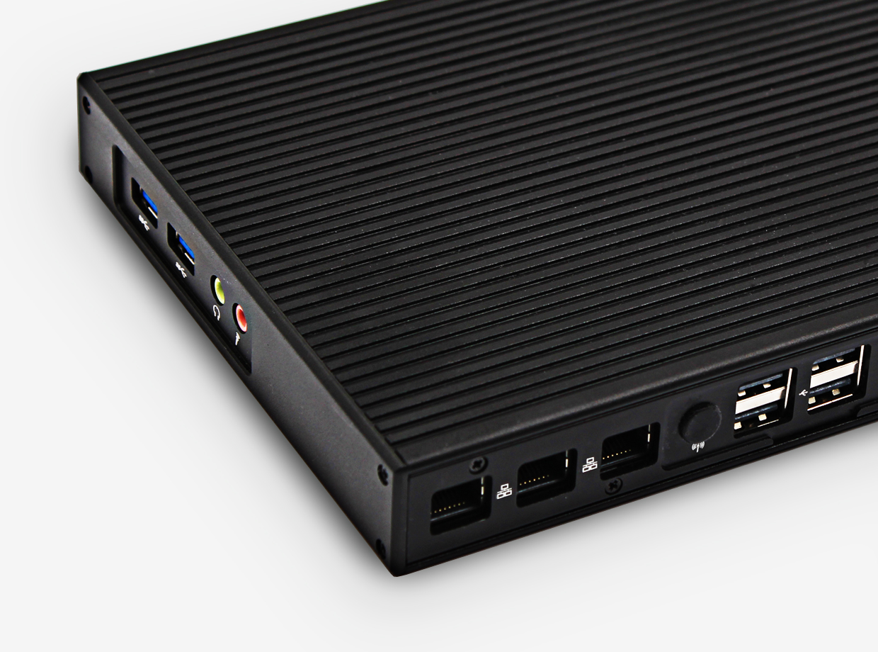 • Rich I/O ports: 2 × USB3.0, 4 × USB2.0, 3 × LAN,  2 × COM