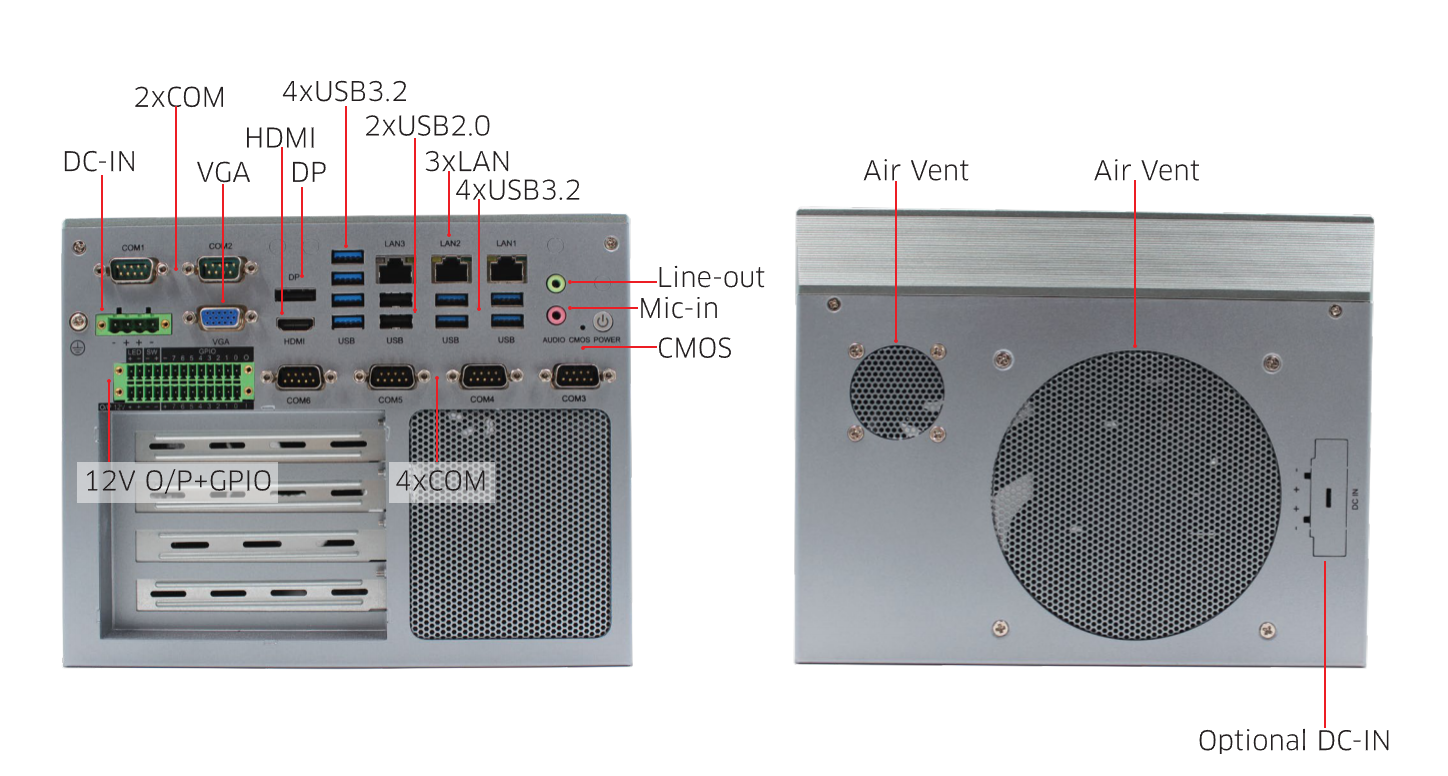 丰富接口:配备多种I/O接口,包括8个USB 3.2、2个USB 2.0、6个COM端口以及多个显示接口,让您可以轻松连接各种外设和设备,实现全面的互联互通。