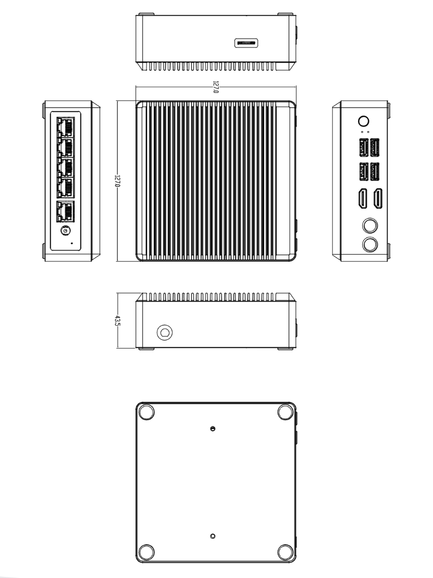 I/O Ports: 4xLAN, 2xUSB3.2, 2xUSB2.0, 1xCOM, 1xSIM
