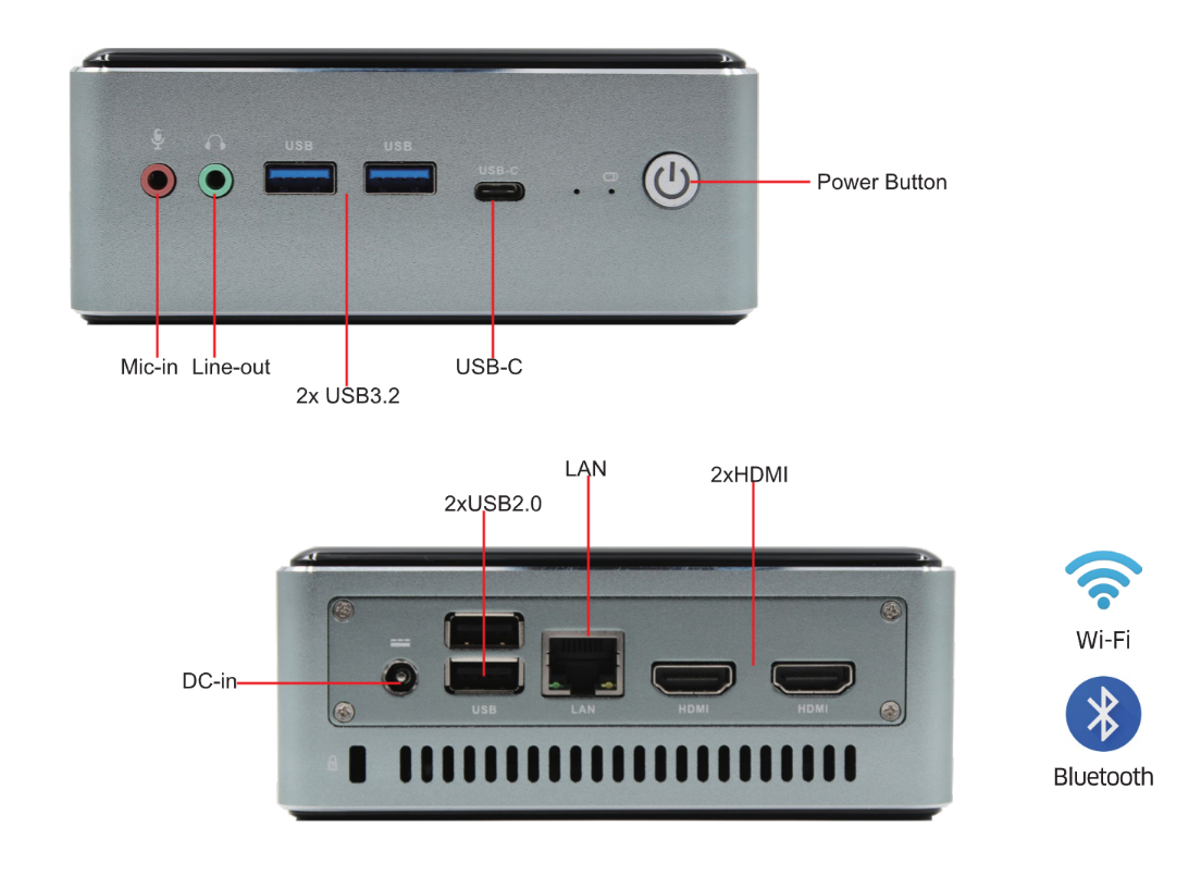 I/O Ports: 2xUSB3.2, 2xUSB2.0, 1xLAN, 2xHDMI, USB-C, Line-out, Mic-in,