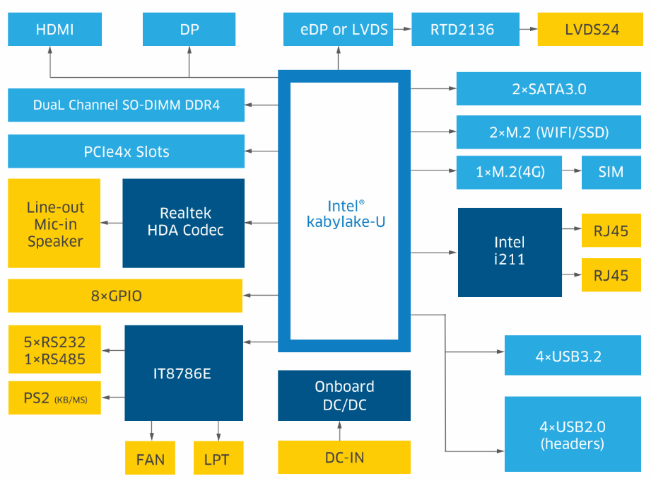 多样显示输出:通过HDMI、DP、eDP/LVDS等多种显示接口,实现灵活多样的显示输出,满足您不同的视觉需求。