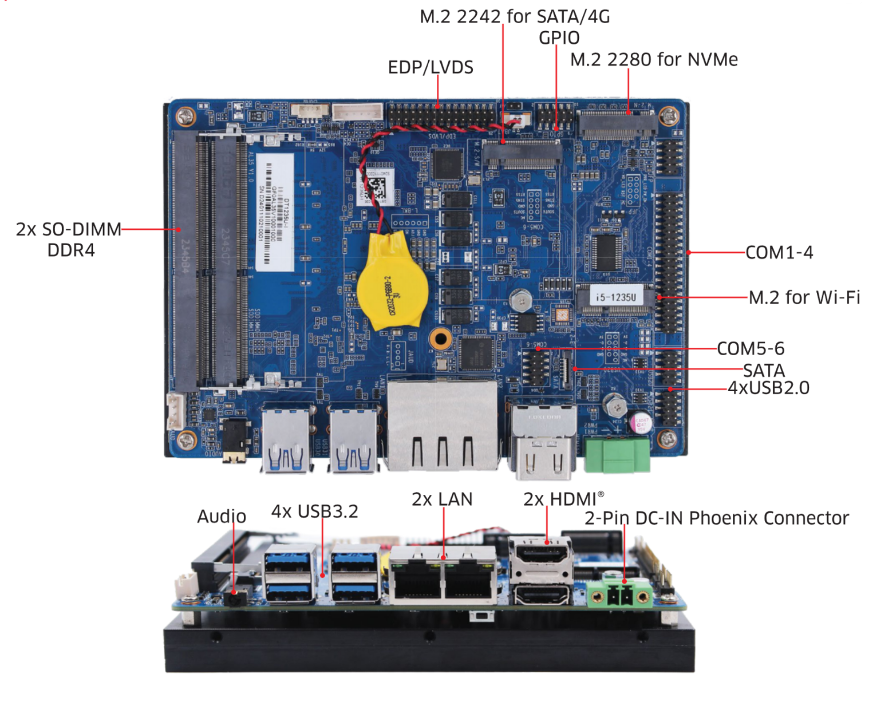 灵活扩展与高度集成:支持M.2接口扩展Wi-Fi和多种存储选项,SBC-AL35提供了灵活的扩展能力。同时,其紧凑的尺寸和高效的散热设计使其易于集成到各种系统中。