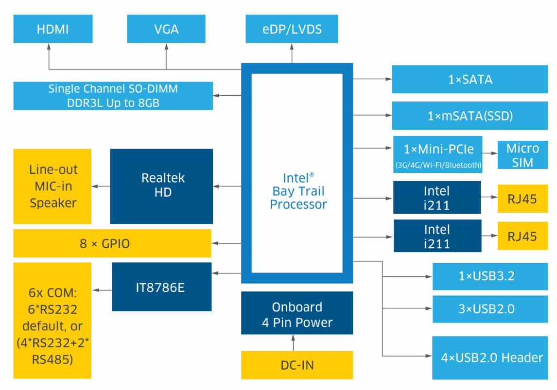 灵活内存配置:支持单通道SO-DIMM DDR3L内存,最大容量可达8GB,为您提供灵活的内存配置选项,满足不同应用场景的性能需求。